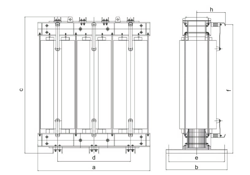 Las columnas de núcleo de hierro y los devanados de esta serie de reactores son completamente fundidas por resina, lo que proporciona un mejor rendimiento eléctrico y resistencia mecánica. A través de un diseño cuidadoso, seleccionamos una densidad de flujo magnético más baja y establecemos más espacios de aire pequeños, asegurando así la precisión y linealidad del reactor.